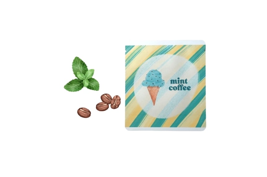 コーヒーとミントをブレンドし、ドリップバッグに詰めました。砂糖と牛乳を入れて飲むのがおすすめ!マイルドなのにスッとする不思議でクセになるおいしさのミントコーヒーです。